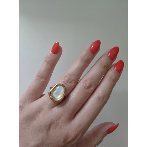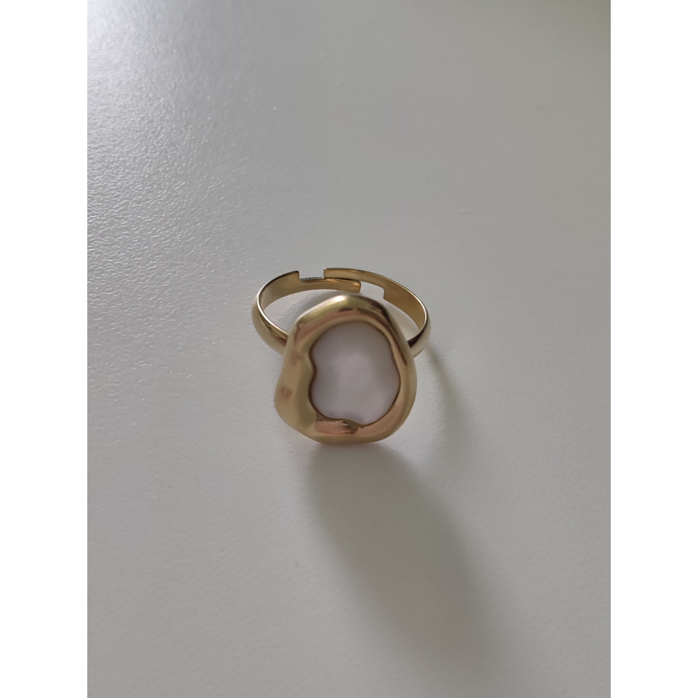 Anillo de acero inoxidable con nácar blanco. Ajustable, dorado.