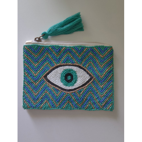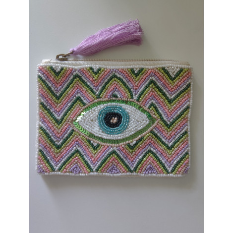 Monederos hechos a mano de abalorios de colores por delante, y por detrás de rafia (ver última foto). Con detalle de fleco decorativo en la cremallera.