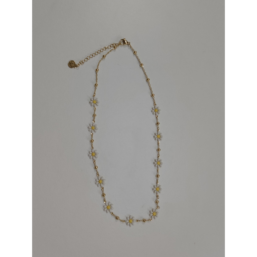 Collar de acero inoxidable ajustable con margaritas y bolas. Dorado.