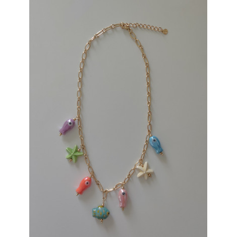 Collar de cadena de acero inoxidable con charms con motivos del mar. Ajustable, dorado.