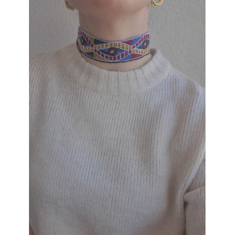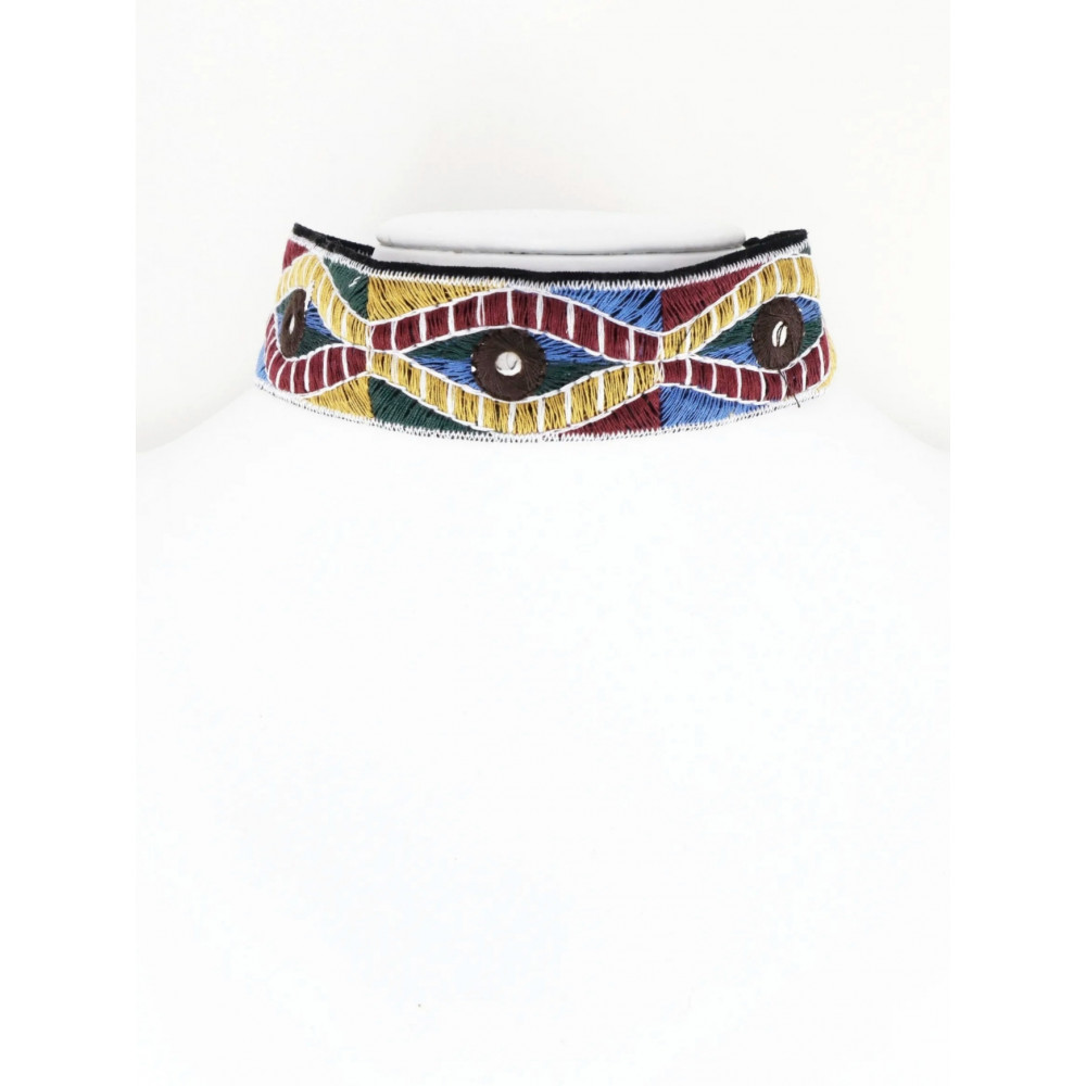 Choker (pegado al cuello) de hilos en varios colores y detalle de espejitos con cierre de acero inoxidable en color dorado. Ajustable.