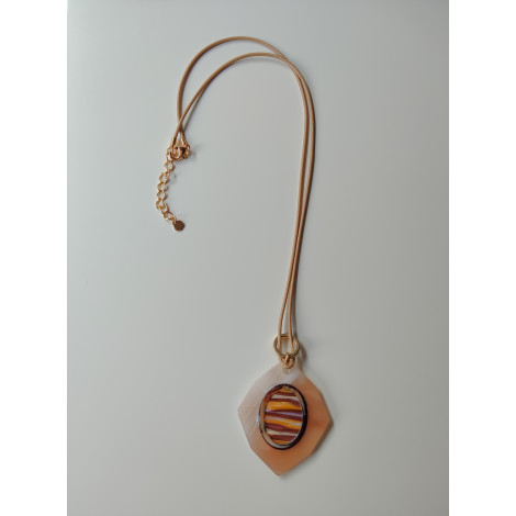 Collar largo de cuerda con detalle acrílico y cierre ajustable.