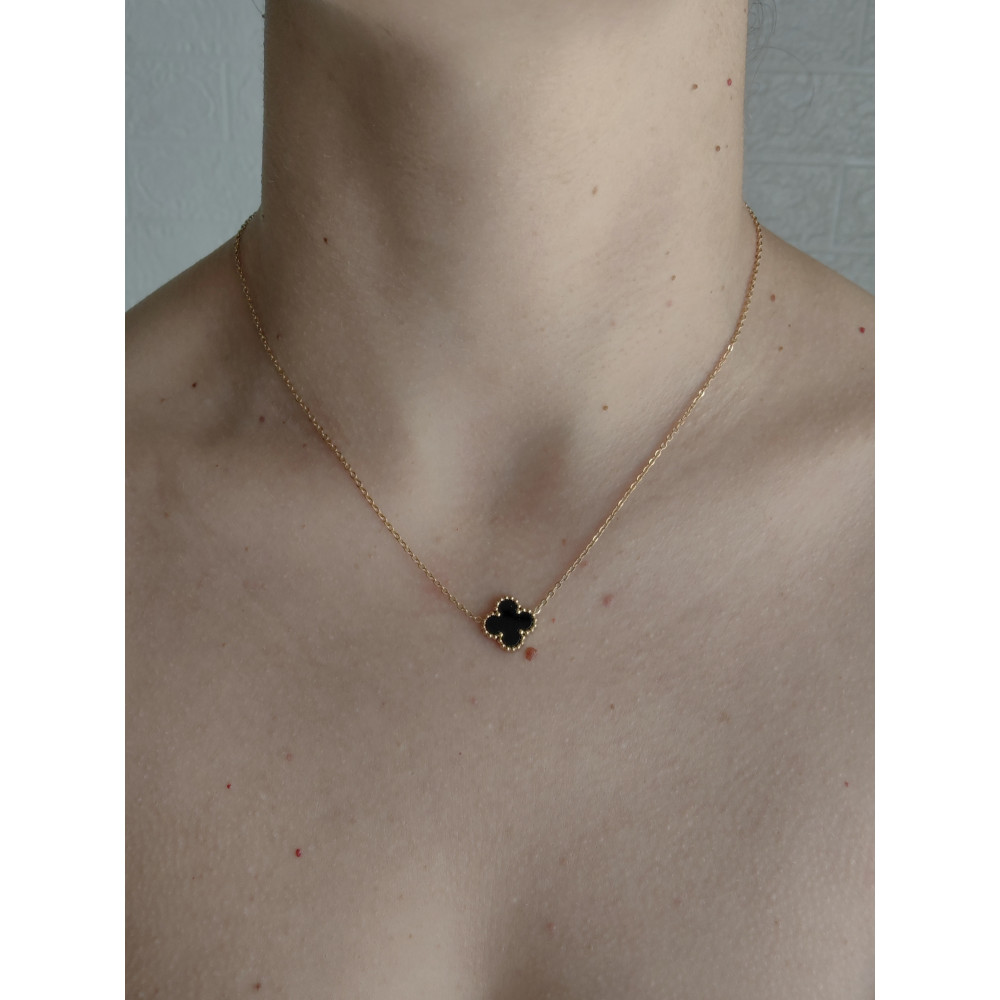 Collar fino de acero inoxidable con flor nácar negra ajustable. Dorado.