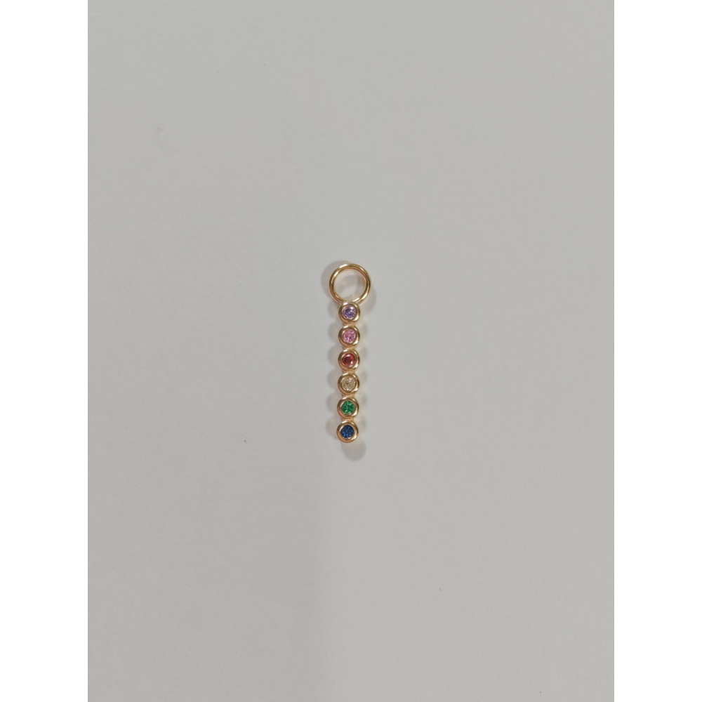 Charm de plata de ley 925 bañado en oro con circonitas en varios colores. Dorado.