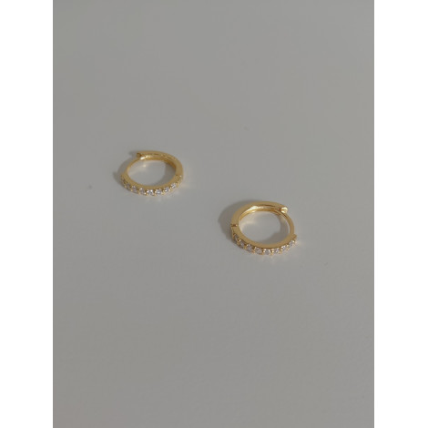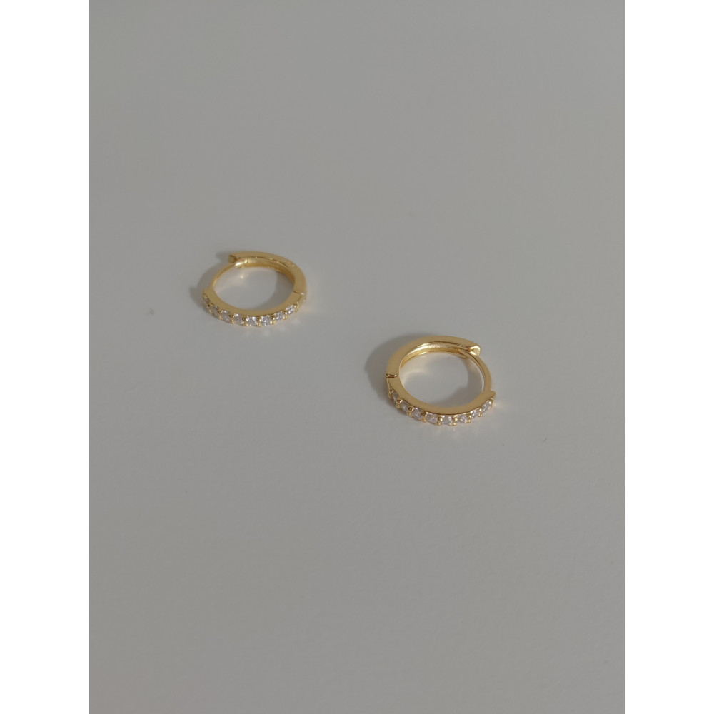 Pendiente de plata de ley 925 de 9mm bañado en oro con circonitas. Dorado.