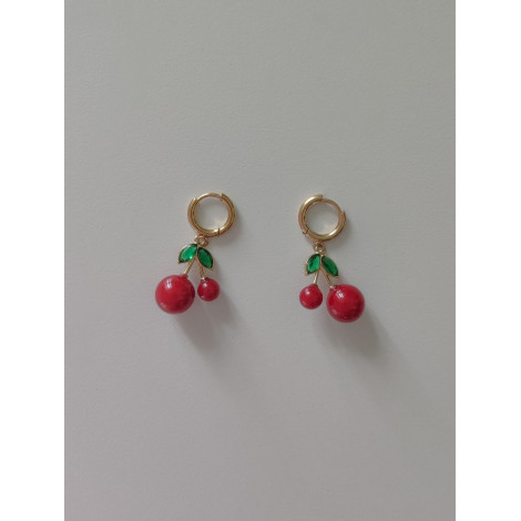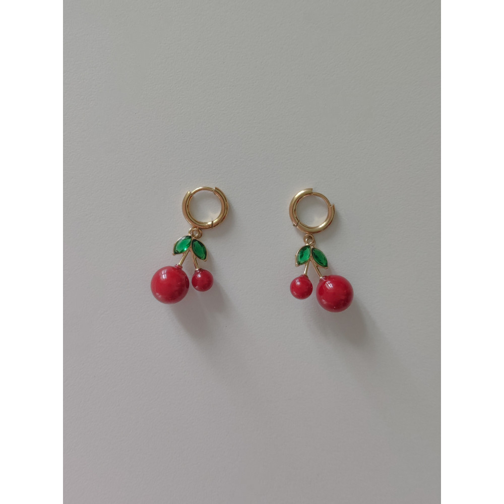 Pendientes de arito de acero inoxidable con colgante en forma de cereza.