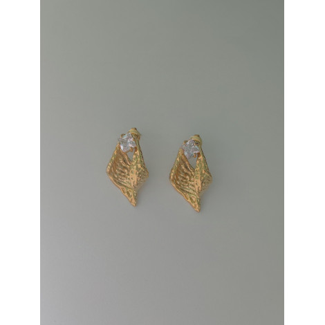 Pendientes de acero inoxidable con efecto rugoso vintage y detalle de brillantito en forma cuadrada. Con cierre de tuerca. Dorados.