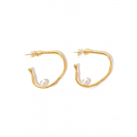 Aros irregulares de acero inoxidable con cierre de tuerca y detalle de perlas en su base.