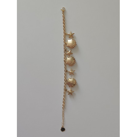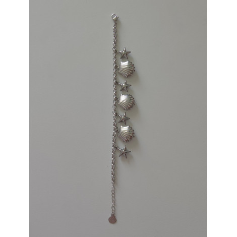 Pulsera de acero inoxidable con charms de conchas y estrellas. Ajustable.