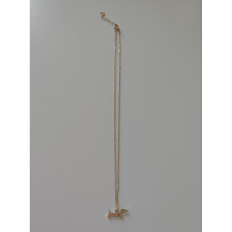 Collar de acero inoxidable con colgante de perro salchicha. Ajustable.